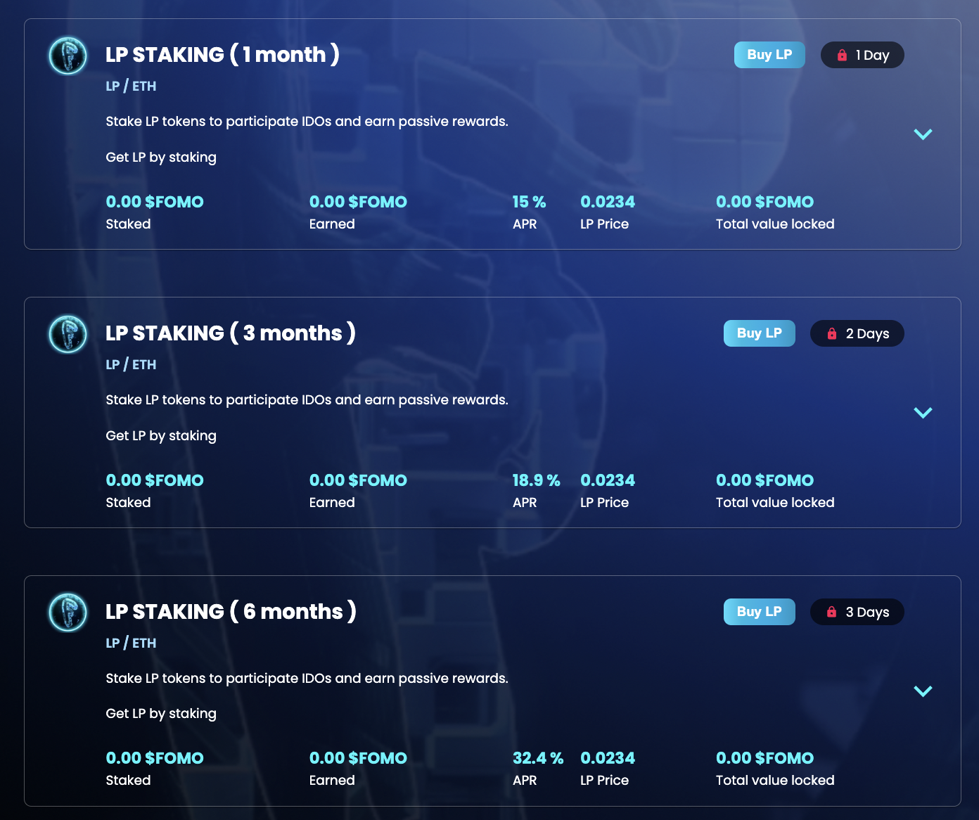 * **Staking FOMO/ETH LP in the 1-month pool: 15% APR**